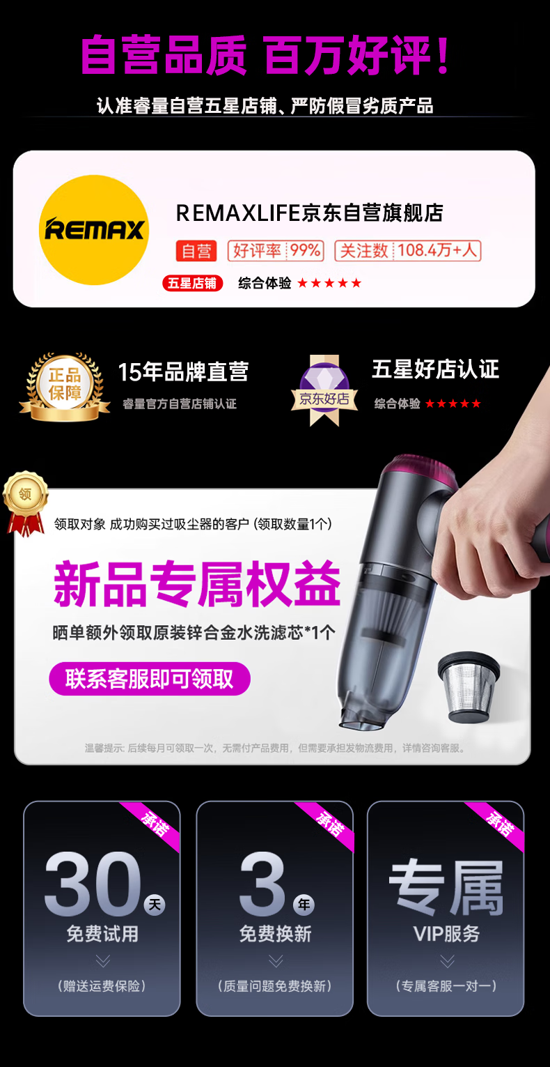 REWONDER【2025热卖NO.1】车载吸尘器大吸力无线吸尘器手持铅笔吸尘器戴森紫色桌面吸尘器家用大功率长续航