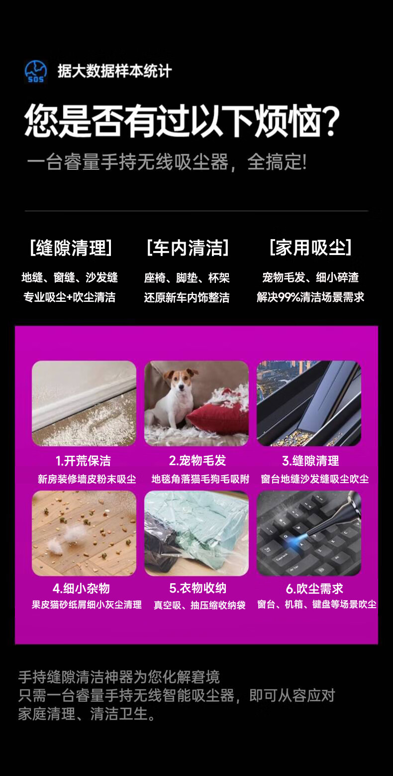 吸尘,吹风,屏幕清洁
