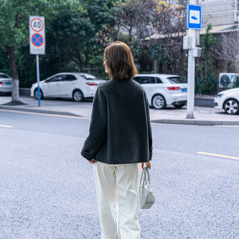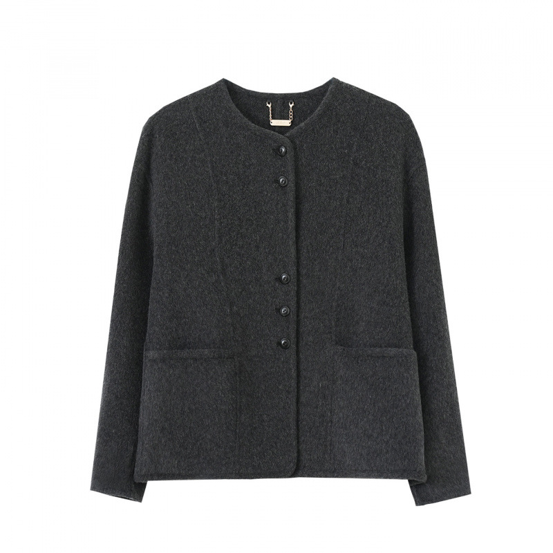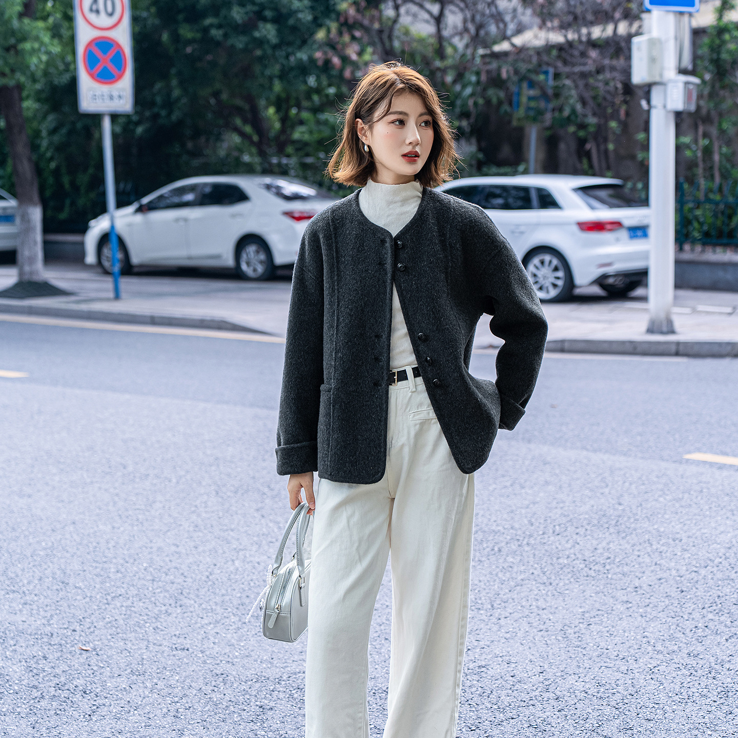 圆领小香风双面羊绒大衣羊毛2025年秋冬女短款单排扣气质外套