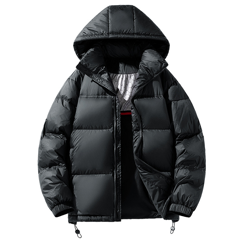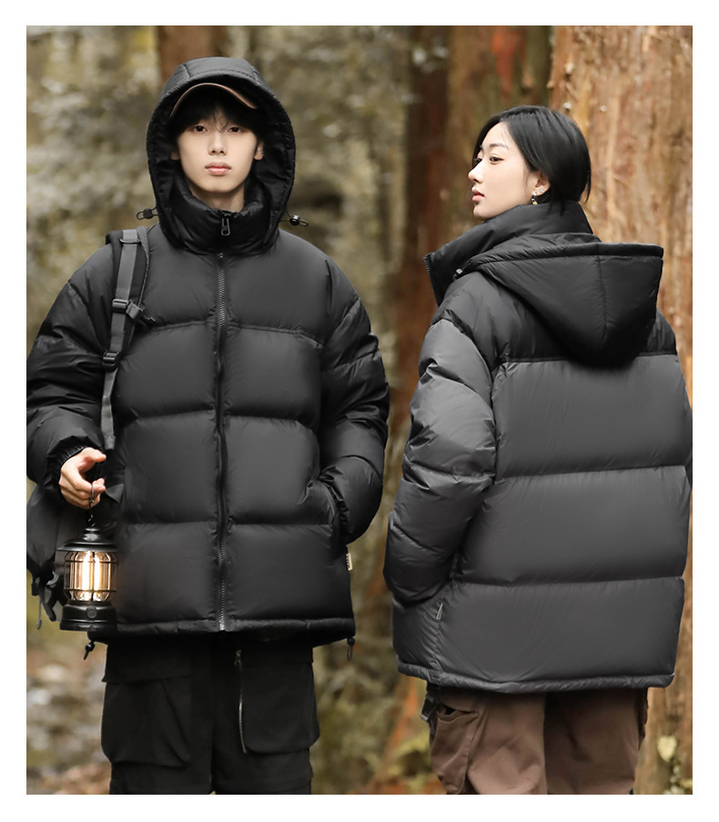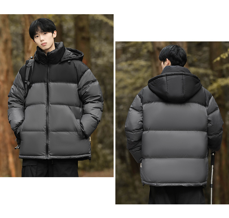 冬季新款男士韩版撞色连帽石墨烯发热加厚保暖90白鹅绒情侣羽绒服