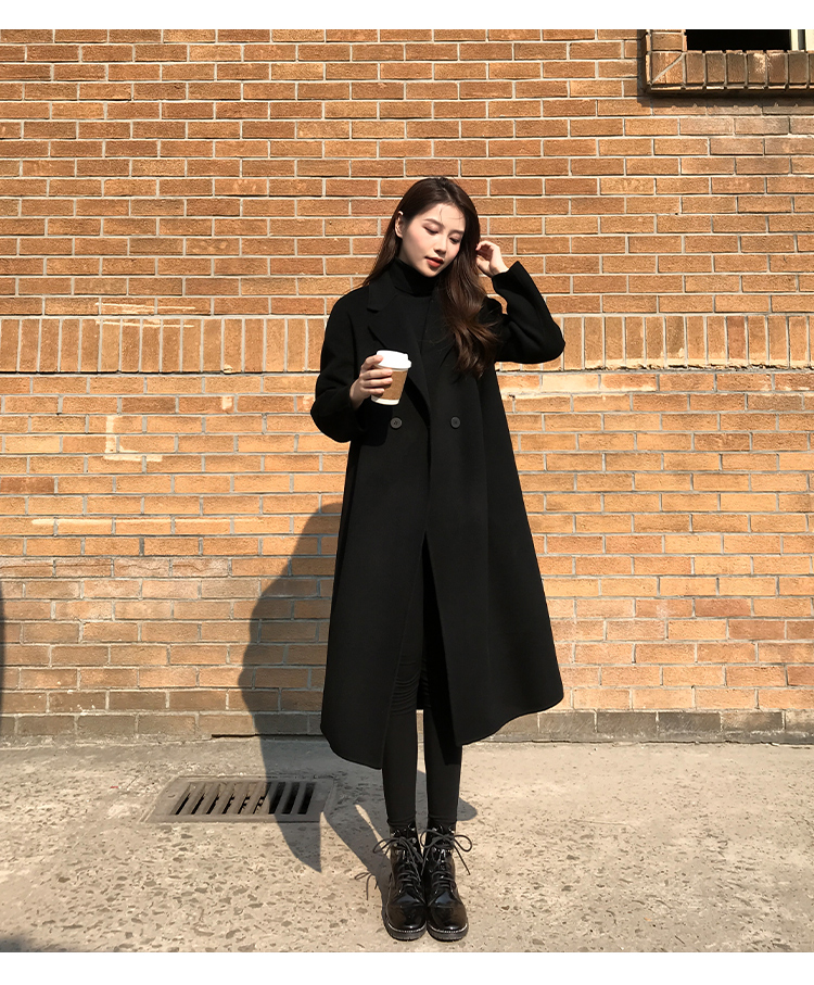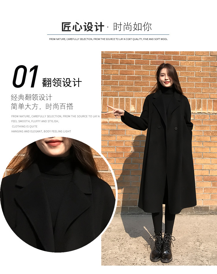 黑色双面羊绒大衣女秋冬2025新款高级感赫本风中长款羊毛呢子外套